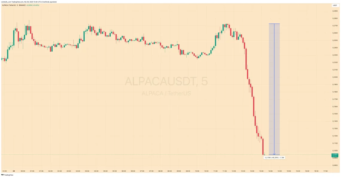 Alpaca Finance’ın kripto parası ALPACA, Binance’in delist edeceğini açıklamasının ardından iki saat içerisinde yüzde 65 değer kaybetti.